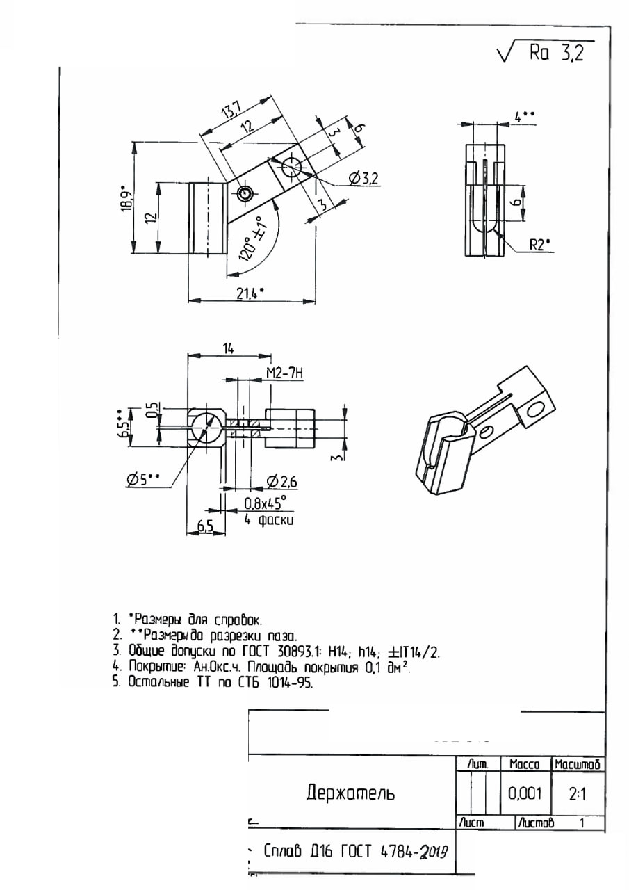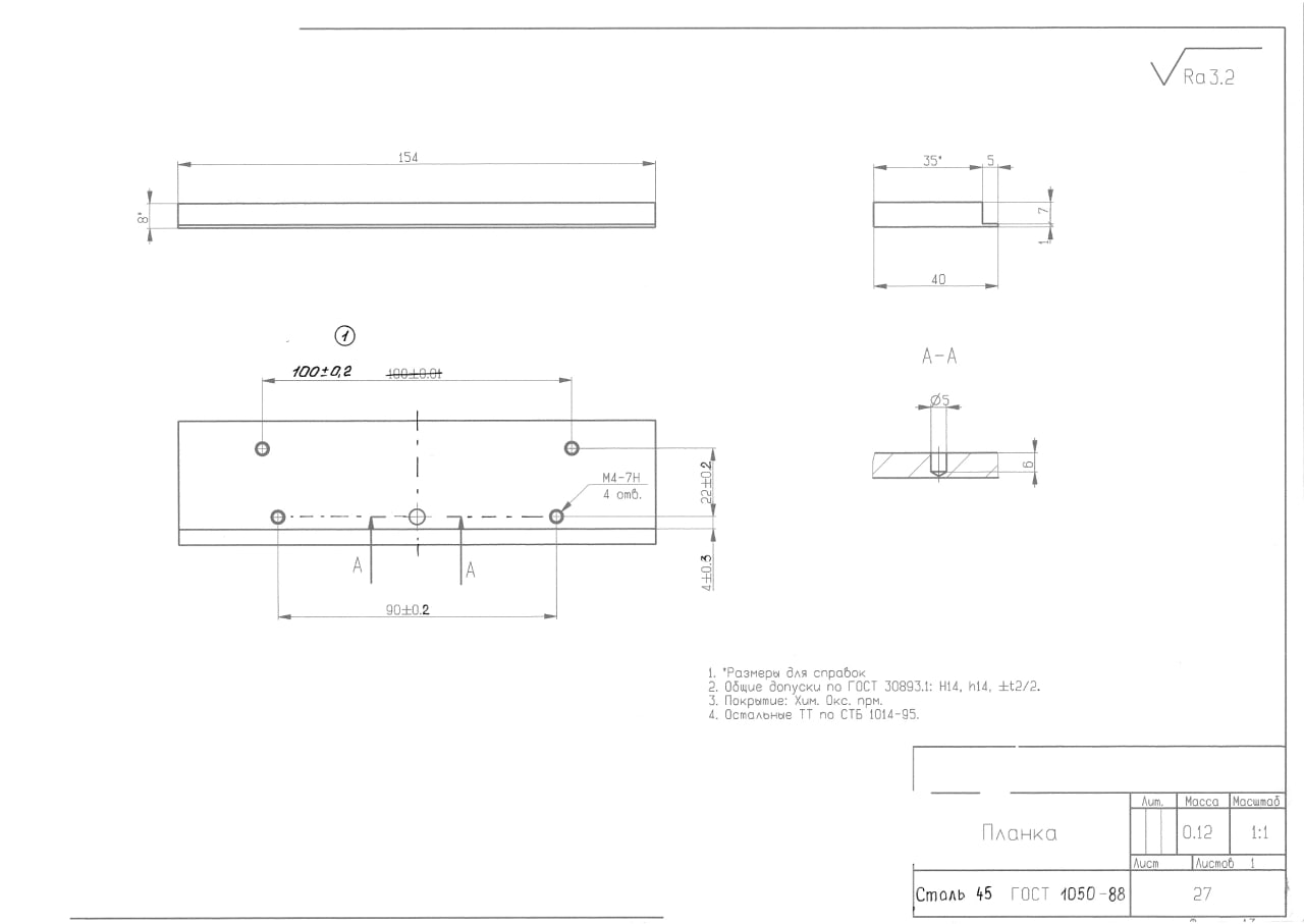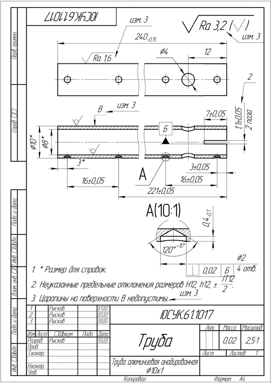 01.06.2025 Необходимо обработать детали с соблюдением всех указанных размеров. После обработки детали должны иметь товарный вид, без заусенцев и острых кромок. Особое внимание следует уделить детали РТЛП.711161.002 — заготовке в виде трубы, где обрабатывается наружная поверхность, гравировку делать не нужно. Количество деталей: РТЛП.711161.002 — 20 шт. РТЛП.711151.001 — 20 шт. РТЛП.711764.001 — 20 шт. РТЛП.7116117.001 — 20 шт.  |