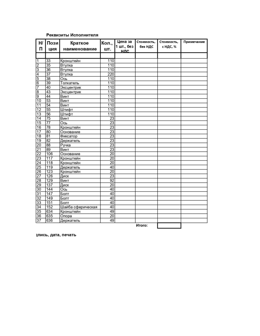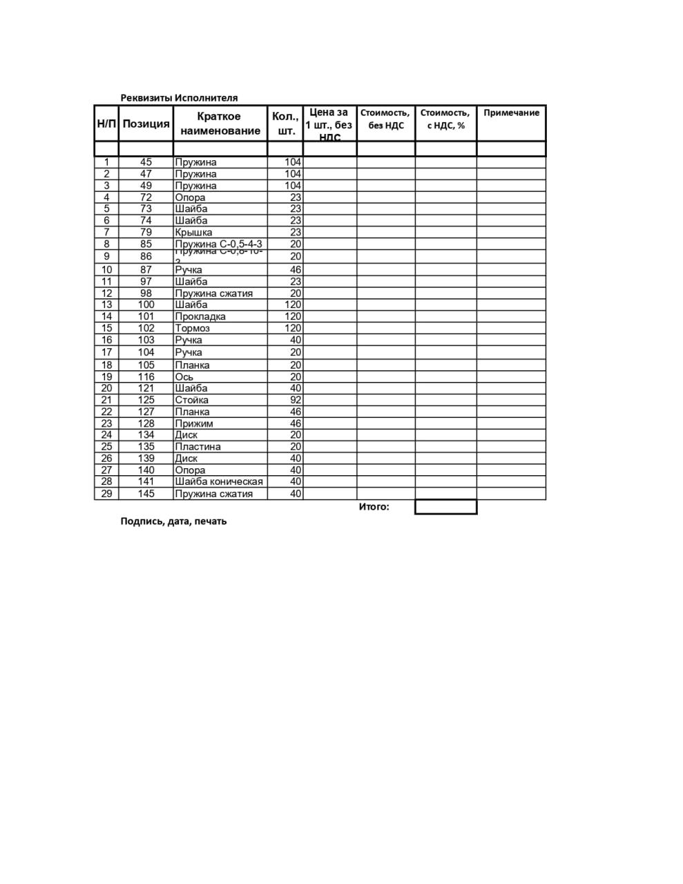 25.06.2025 Просим прислать КП на изготовление позиций в кол-ве 50 шт. каждой. Без покрытия.  |