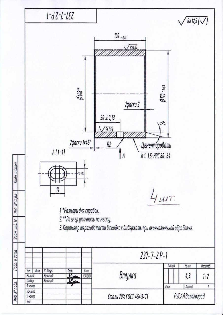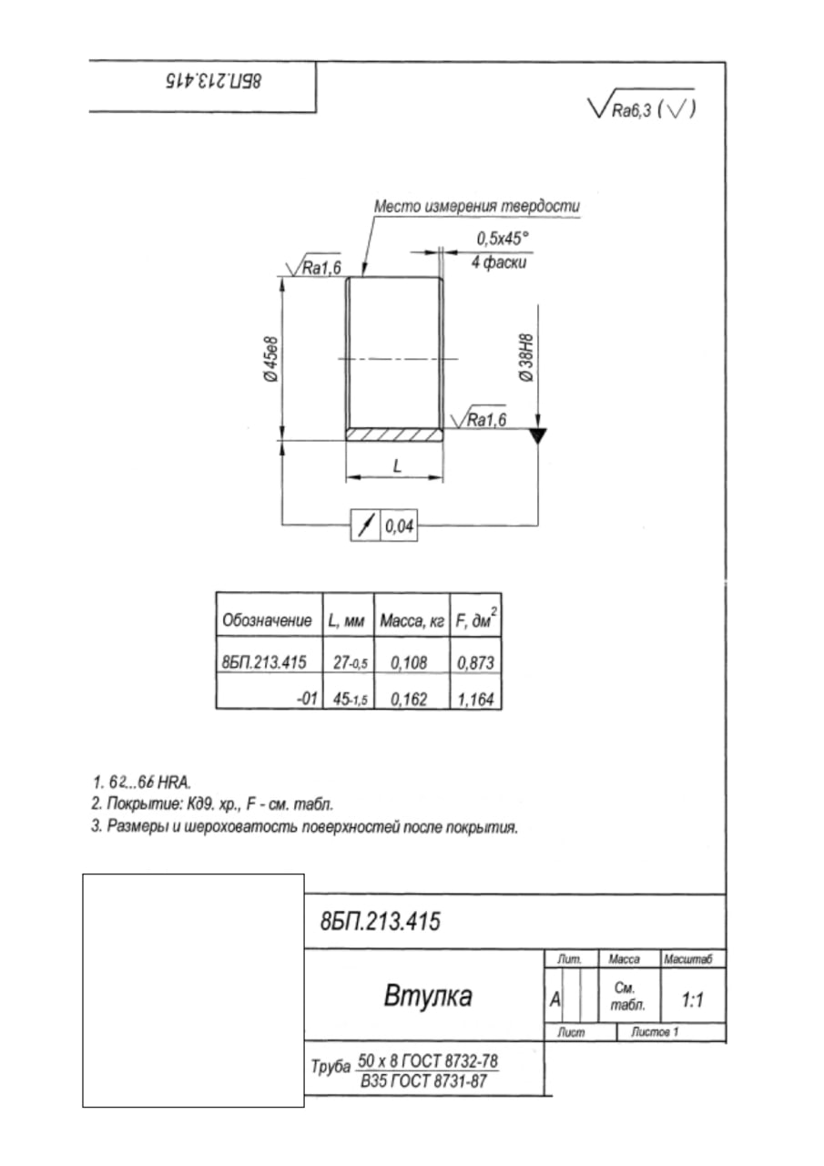 23.09.2025 Необходимо произвести цементацию втулки согласно чертежа в файле в кол-ве 4 шт. Ждём КП. 4 шт.  |
