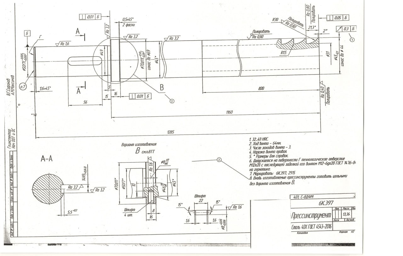 08.07.2025 В порядке оказания технической помощи ОАО УКХ МИНСКИЙ МОТОРНЫЙ ЗАВОД , прошу рассмотреть возможность ионного азотирования конусной части (конуса 45АТ5) и прилегающей торцевой поверхности расточного шпинделя 2А620.225.107. КД прилагается.  |