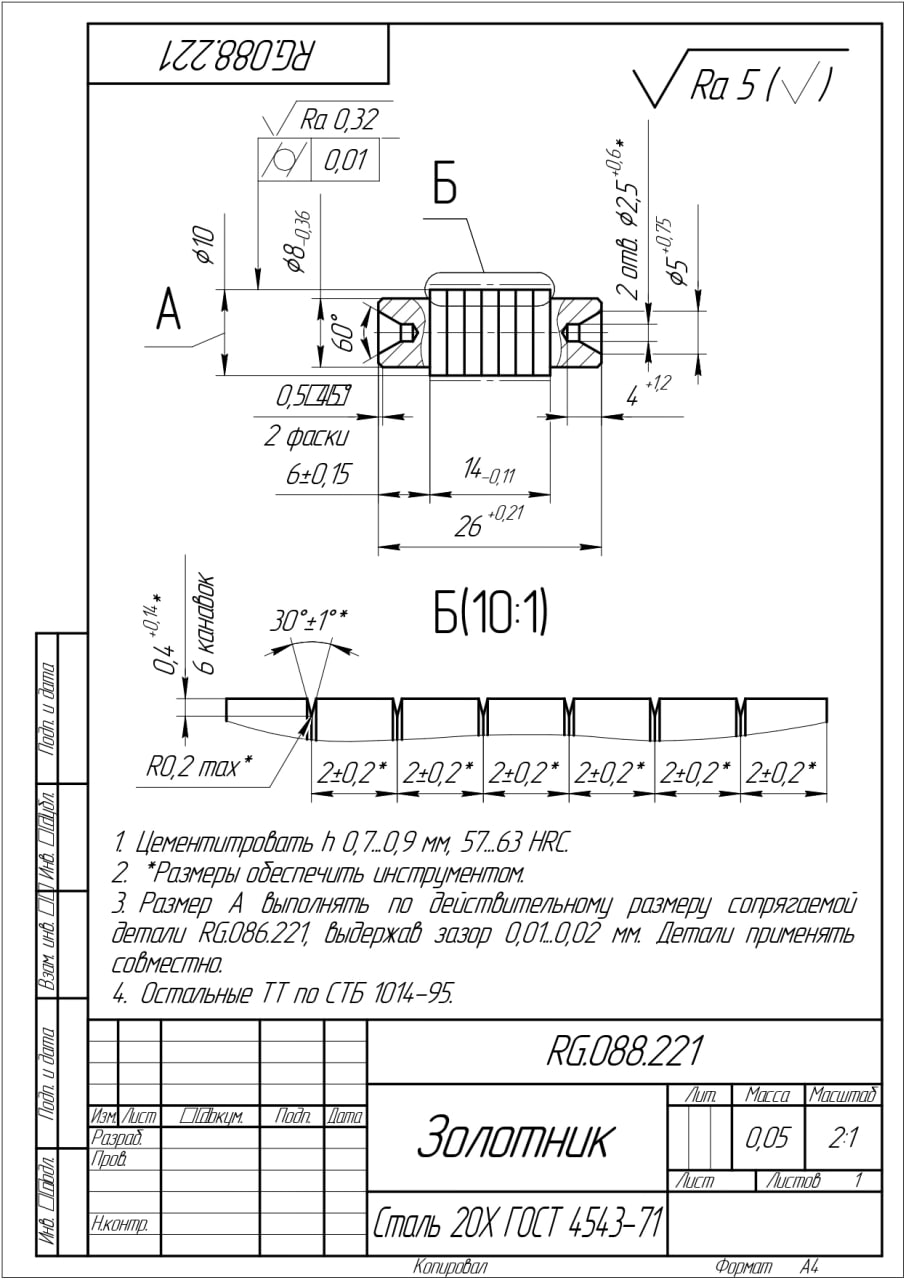 07.09.2025 Прошу рассмотреть возможность обработки зуба согласно прилагаемому чертежу, твердость заготовки под обработку 28...34 HRc. Предполагаемое количество первой партии в районе 10 штук. Зеленым выделил места на которые необходимо обратить внимание. Ответной части для проверки посадочных размеров у нас нет. Сбор КП до: 11.09.25 Адрес доставки - г. Воронеж  |
