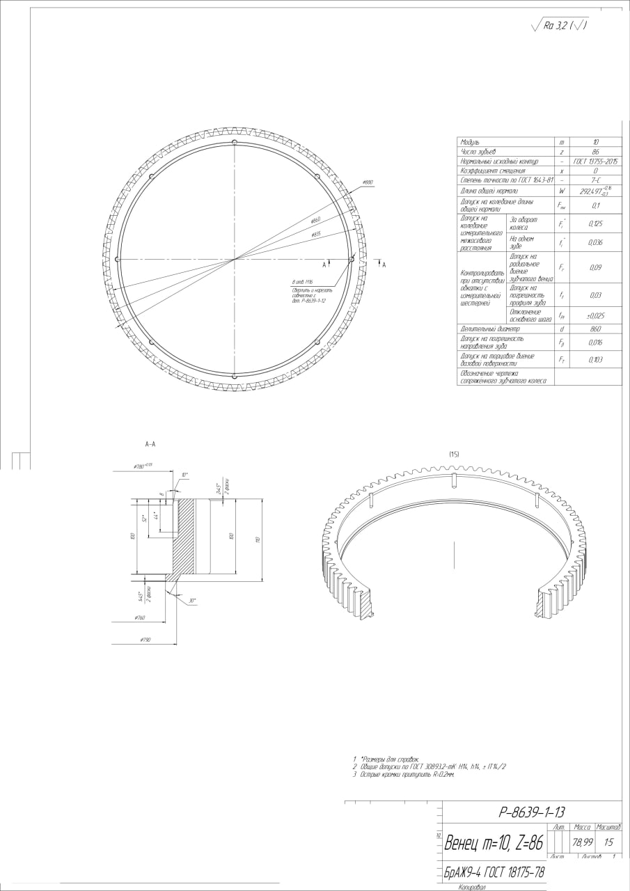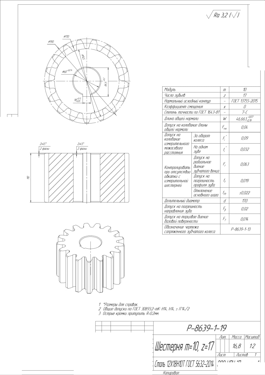 25.09.2025 Интересует изготовление шестерен по чертежам во вложении: 1. Шестерня m=10 Z=17 (Р-8639-1-19) - 2 шт. 2. Шестерня m=10 Z=38 (Р-8639-1-9) - 2 шт. 3. Шестерня составная m=10 z=86 (Р-8639-1-12 СБ - Ступица + Р-8639-1-13 - Венец) - 2 шт. Все, кроме Венца, из стали 12Х18Н10Т. Венец из бронзы БрАЖ9-4. Регион: Нижегородская обл.  |
