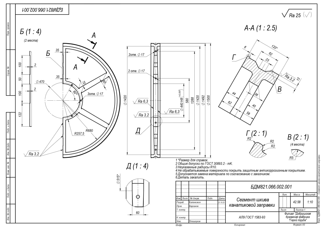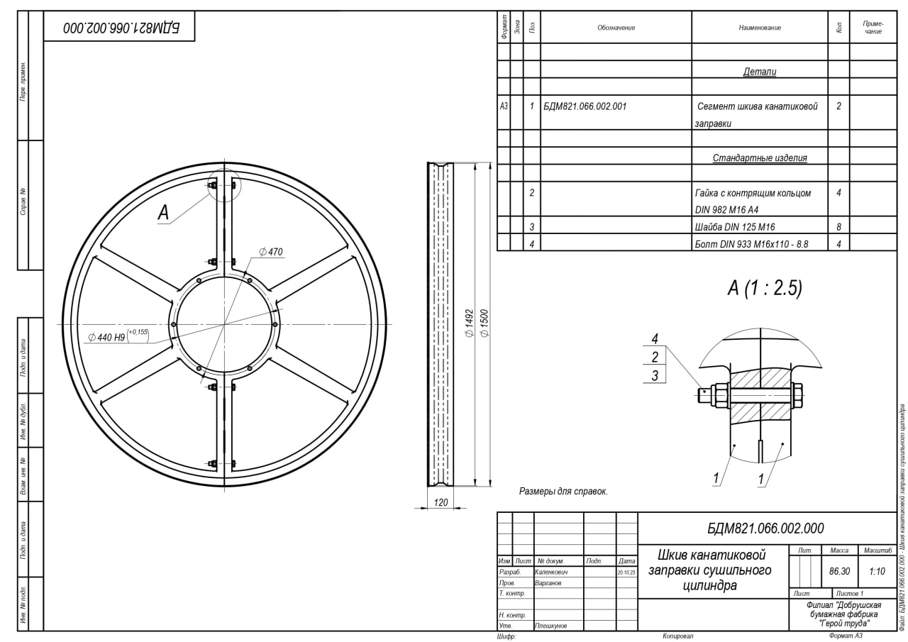 23.10.2025 Просим сообщить о возможности поставки продукции в наш адрес: шкив канатиковой заправки блока цилиндров бумагоделательной машины 821.1. Кол-во 2 шт.  |