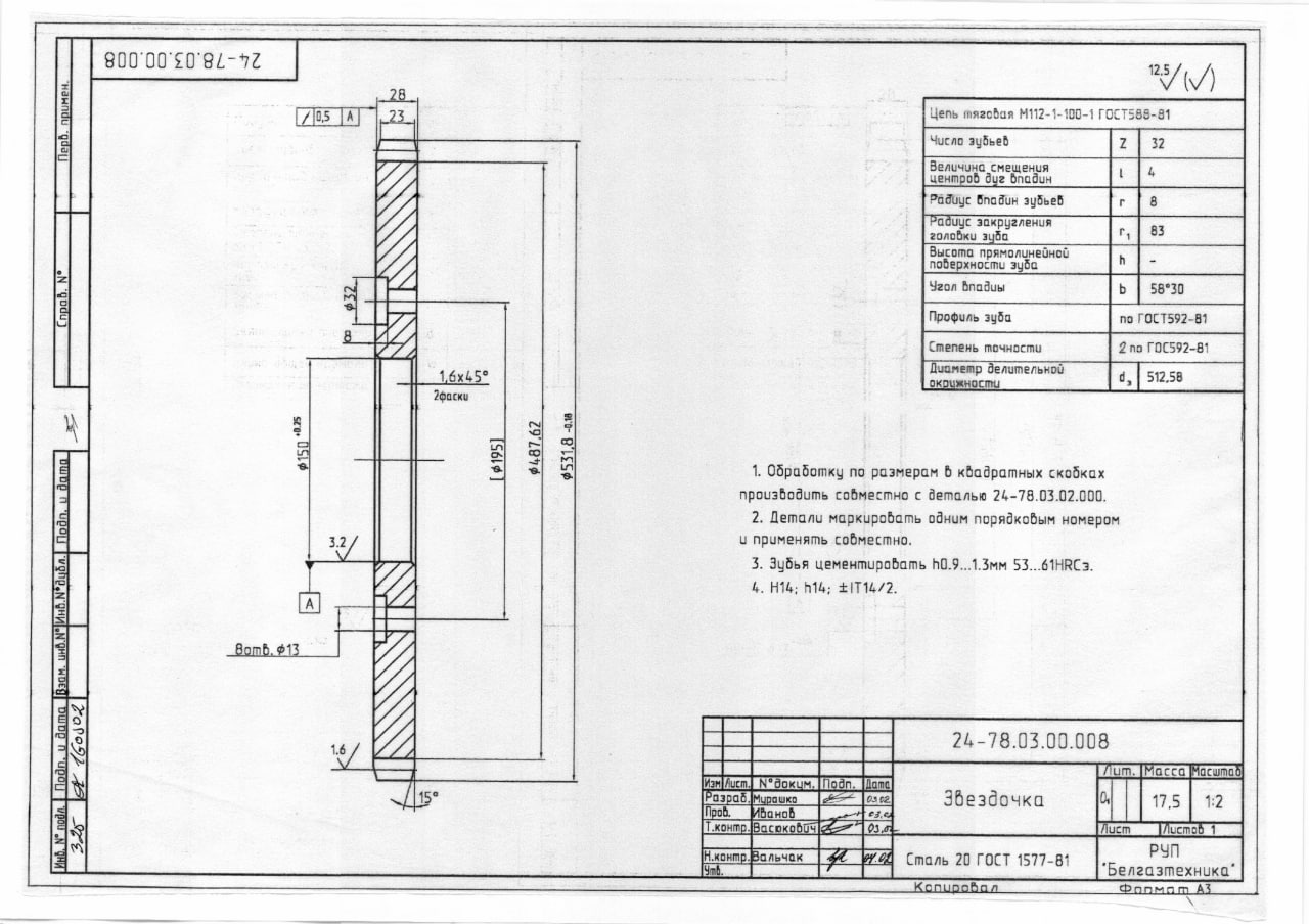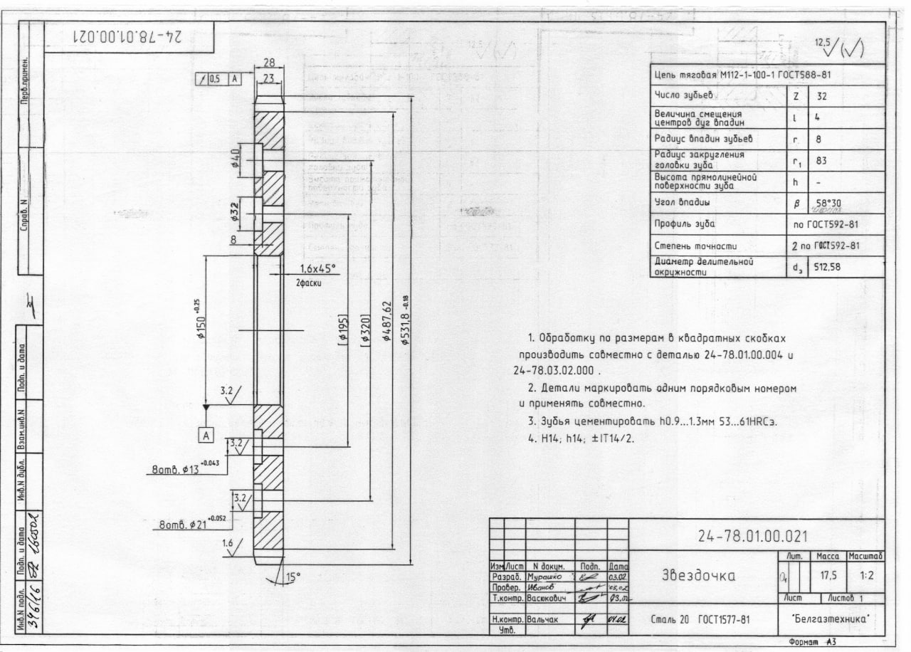 23.10.2025 Просим Вас рассмотреть возможность оказания услуг по кооперации для нашего предприятия, в соответствии с приложенными документами. 1. 24-78.01.00.001 Шестерня (КНП) - 1 шт. ( зубонарезка, изготовление шпоночного паза, цементация, последующая т/о). 2. 24-78.01.00.004 Колесо зубчатое (КНП) - 1 шт. (зубонарезка, цементация, последующая т/о). 3. 24-78.01.00.021 Звёздочка (КНП) - 1 шт (цементация, последующая т/о). 4. 24-78.03.00.008 Звёздочка (КНП) - 6 шт. (цементация, последующая т/о),  |